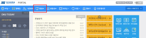 - [그림1] 학교홈페이지에 들어가서 상단의 'PORTAL'을 클릭하면 [그림 2]가 나타난다.